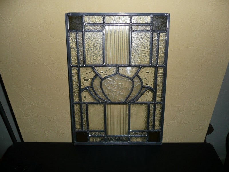 Enkele jaren geleden heb ik een workshop glas-in-lood gevolgd. Tijdens deze eendaagse workshop heb ik, samen met mijn vrouw, een glas-in-lood raam vervaardigd (uit blank glas om toch enig licht in de ruimte te verkrijgen) voor onze toiletruimte. Het ontwerp is van ons zelf. Onder deskundige leiding hebben we dit raam in één dag gefabriceerd. De instructeur was enigszins onder de indruk.